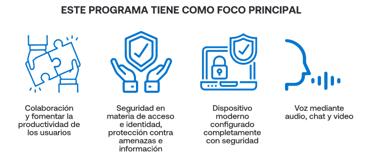 Cuente con un equipo que lo ayudara a planificar, implementar y migrar a los servicios de Microsoft 365 sin costo adicional. Aproveche FastTrack (Microsoft 365, Office 365, Windows 10 y Enterprise Mobility + Security [EMS]) para ayudar a implementar e impulsar con éxito la adopción de las soluciones de Microsoft 365 por parte de los usuarios.